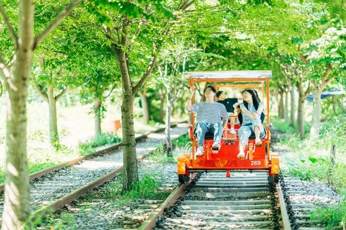 가평 레일바이크는 가평역을 출발해 북한강 철교, 계절 따라 그 모습을 달리하는 느티나무터널, 영화 <편지>의 촬영지 경강역에서 회차, 가평역으로 돌아오는 왕복코스다. 북한강을 가로지르는 높이 30m의 아찔한 북한강 철교를 따라 폐달을 밟다 보면 한적한 시골마을과, 푸른 빛깔의 아름다운 강변이 번 갈아가면서 눈앞에 펼쳐진다.